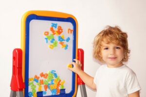 Phonics activities such as rearranging letters can help children to remember different sounds. Try pairing educational toys such as framed whiteboards with wooden magnetic letters or jumbo lowercase magnetic letters. Children can search for the correct letters and spell the word on their whiteboard. Study the word for up to one minute (sand timer educational toys are perfect for this) and discuss which letters are making the different sounds. Jumble the magnetic letters and ask children to spell the word again. Children can use whiteboard pens to underline different sounds to help them remember where to place the letters.
