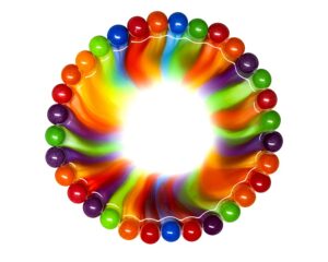 Create your own colour wheel with a Skittles experiment. To start, place Skittles around the inside edge of a white plate, alternating the colours. Carefully pour water over the sweets, trying not to move them. Next, watch as the sugar and food colouring dissolve and mix with the water, creating a rainbow colour wheel. Kids can try change the type of sweet or temperature of water to investigate different cause and effect relationships. Read about more easy science experiments for kids on National Geographic Kids.