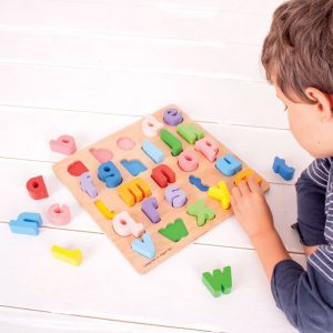 For literacy themed educational gifts for kids, why not help children learn their alphabet with these helpful two-sided tiles. With gradient lettering to trace and delightful corresponding pictures, children can learn their alphabet with ease. Furthermore, for children who like puzzles, this chunky wooden jigsaw has colour coordinated slots to help children develop matching skills whilst learning lowercase letters through recall and recognition.
