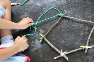 Make learning times tables fun with sticks! Each child locates a stick outside, then stands or sits in a circle with peers. If, for example, children are learning their two times table, the parent or teacher taps the stick 2 times on the ground. Round the circle, each child takes turns tapping the next number – in this case, 4, 6, 8, 10 and so on. This can be done for each times table and can also be reversed, counting backwards in times tables. Not only does this game help children to learn their times tables, it also encourages listening skills, concentration and turn-taking –great for outdoor maths KS1 and outdoor maths KS2. To further embed times tables, children can find outdoor objects such as flowers, leaves or pebbles to create arrays. For example, if learning the 5 times table, children could make three rows of five pebbles to visually display “3 x 5”.