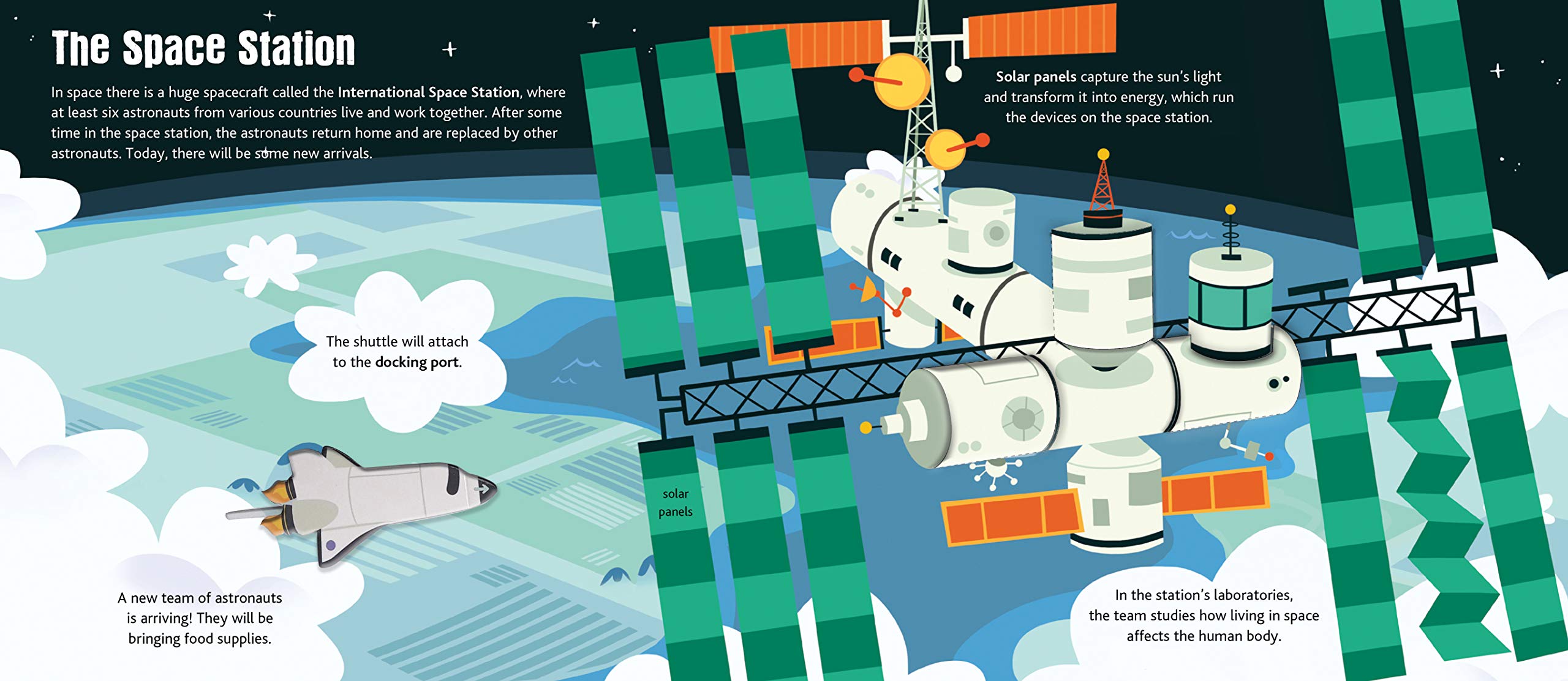 Flaps, pull tabs, and many other movable parts show young readers an amazing universe beyond Earth! From astronaut training and rocket launches to landing on the moon and working on the space station, this volume is chock-full of information and provides a fascinating introduction to the world of space exploration.