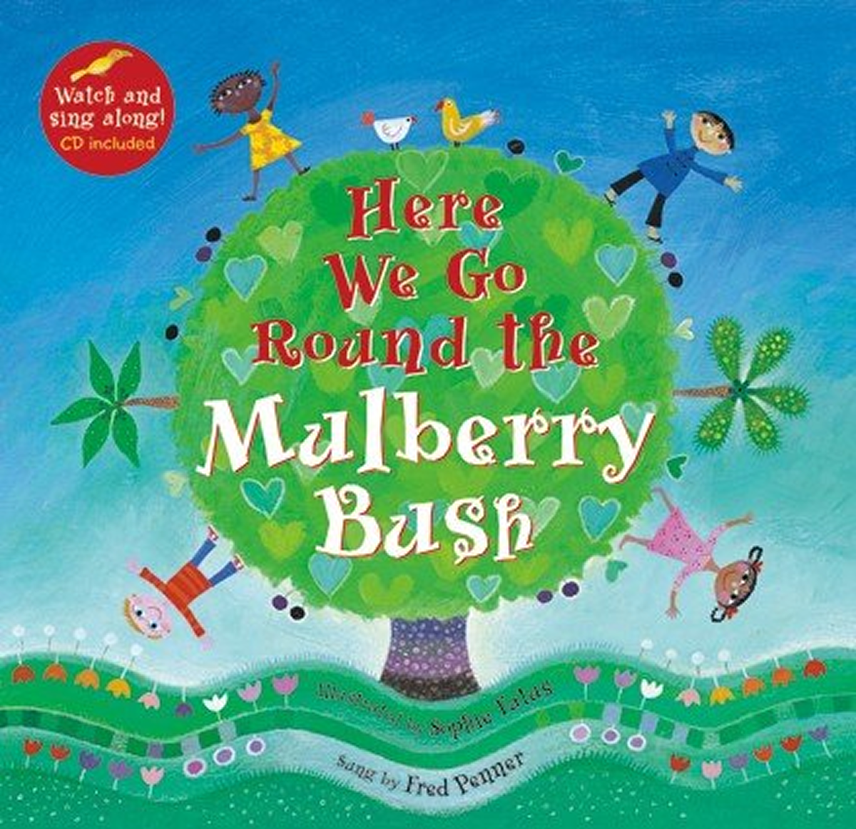In this cheerful picture book with an accompanying CD, four children in different cultures act out the revised words to a traditional song, Here We Go round the Mulberry Bush … Brimming with activity and colour, the stylized acrylic paintings make each setting look different and inviting … Slipped into a plastic pocket on the endpapers, the CD features Canadian musician Fred Penner singing the new words. Appended notes introduce the old song and the accompanying movements. An upbeat way to introduce the notion that people around the world are different yet have much in common.
