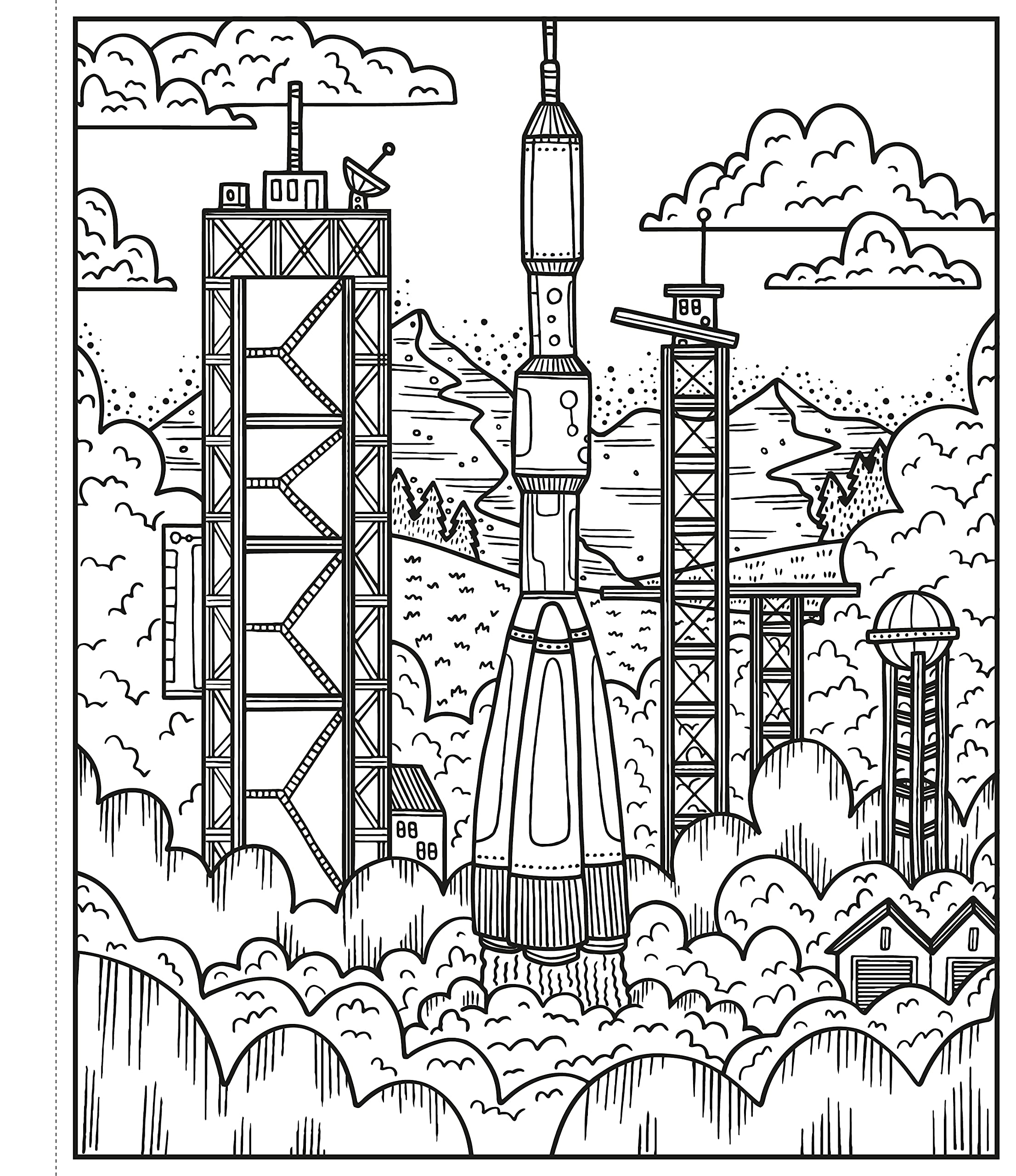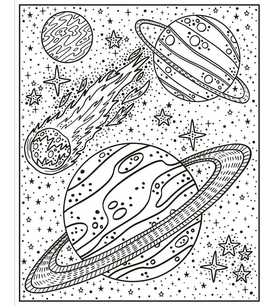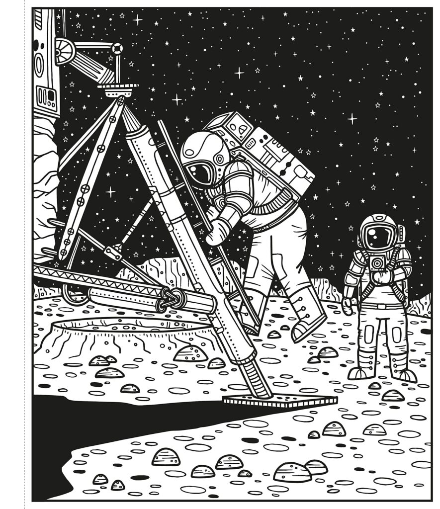 Full of awe-inspiring scenes from space. Simply brush water over the black and white designs to watch everything from asteroids to Sun probes burst into magical colours.