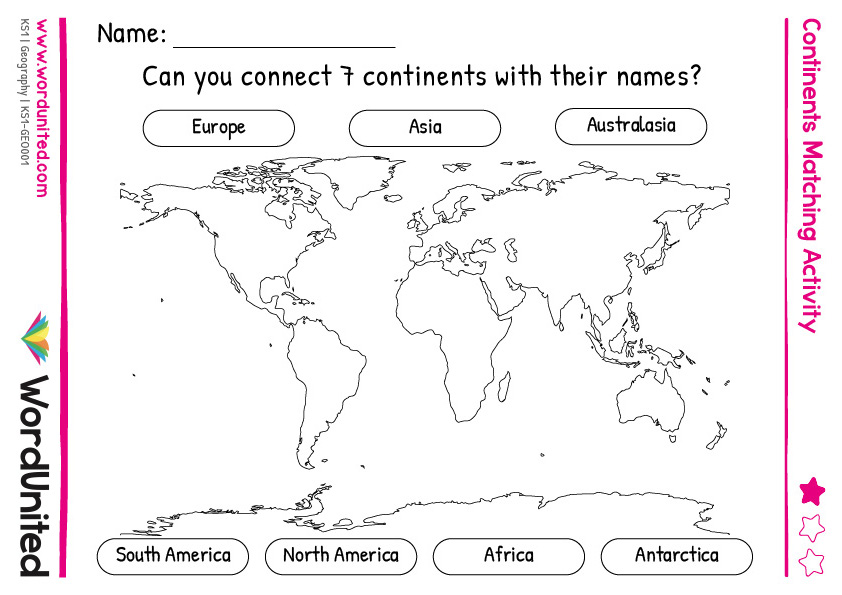 Differentiated for all abilities, children can develop their knowledge about the seven continents of the world, from matching the names to their place on the map to labelling the continent names. Supports the following area of learning within Key Stage 1: Geography.