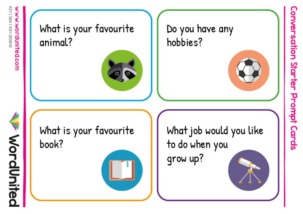 Children can learn how to communicate with these conversation starters! Practice in groups to improve language and social skills. Supports the following areas of learning within Key Stage 1: SEN.
