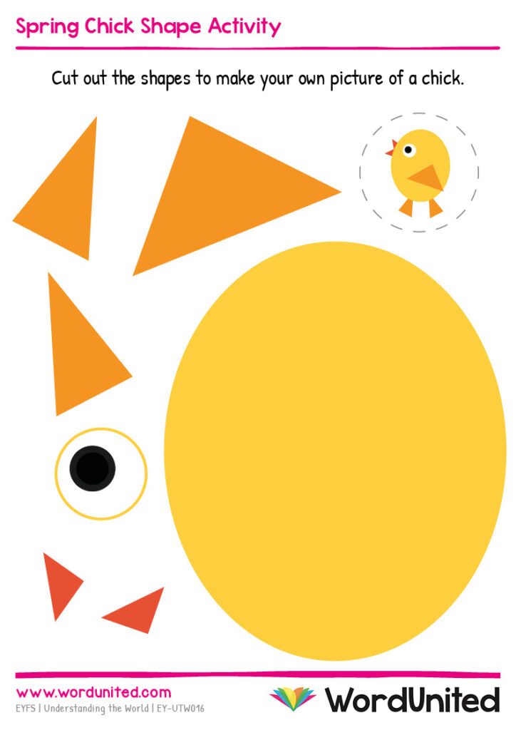 Create your own Spring chick with this cut and stick activity! Little hands can develop fine motor skills and hand-eye coordination as they carefully cut out the different piece to make a chick. Supports the following areas of learning within the Early Years Foundation Stage: Understanding the World.