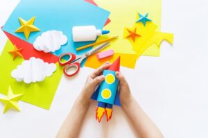 Sensory play activities burst with fun because kids can get messy… On purpose! For kids who love slime, have a go at making this stretchy universe slime. Alternatively, fill a large bowl with water and use Handy Scoopers, Claw Grabbers or Gator Grabber Tweezers to catch stars and rocks. Similarly, you can swap the water for colourful sand to create a sensory space bin. These space activities for kids are excellent for helping children to develop a number of early skills, including hand-eye coordination and fine motor skills.