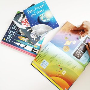 Browse our brilliant range of primary science space books and expand your knowledge of all things outer space! Inquisitive cosmic kids will enjoy Space in 30 Seconds, discovering attention-grabbing facts about space. Blast through the galaxy and explore space whilst singing along to a rocking beat with Space Song Rocket Ride. Love dinosaurs and space? Follow a group of dinosaurs on their cosmic journey and find out they can make to the moon in Dinosaur Rocket! Older kids may like this informative book about space that is filled to the brim with 100 fascinating facts and bright, infographic illustrations.