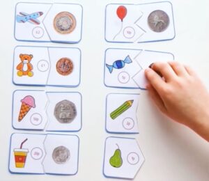 In the modern day, with the increasing prevalence of social media and exposure to advertisements, teaching kids about money is vital. From understanding the value of money to handling it in a responsible way, watch our snappy learning video above for fun ideas, then read below about 7 useful ways to teach kids about money. You’ll find entertaining money board games for kids, engaging money worksheets KS1, pretend play ideas and more.